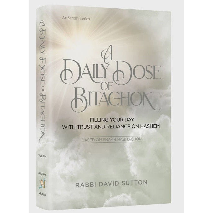 Filling your day with trust and reliance on Hashem Bitachon. How to get it. How to strengthen it. How to learn to rely on Hashem. In every part of our lives. Bitachon – knowing that you can fully rely on Hashem, and only on Hashem -- is an essential part of our Chovos HaLevavos, our “service of the heart.” It is the wondrous gift that enables us to enjoy the blessing of “menuchas hanefesh” – a hard-to-define concept that includes serenity, tranquility, and peace of mind. Rabbi David Sutton, author of many important works including Beis HaLevi on Bitachon and Embrace Shabbos, shares with us more than 130 readings, designed for the consistent daily use that enables truly effective change. Drawn from the classic wisdom of the Chovos HaLevavos Shaar HaBitachon, these insights into this “service of the heart” are remarkably contemporary, speaking to our own challenges. Each reading ends with a practical takeaway, ensuring that we incorporate bitachon into our everyday encounters. And of course, Rabbi Sutton shares stories that show us the amazing power of bitachon. In these readings we will learn how to reframe our thoughts. We will explore hashgachah pratis. We will see how to properly balance hishtadlus, human effort, with bitachon in Hashem, and how to strengthen our connection to Hashem both in good times and hard ones. Fitness experts say that to keep your heart strong and healthy, you need to do a cardio workout. And you need to do it regularly and consistently. It’s the same with bitachon: To keep your “service of the heart” strong and healthy – you need a daily workout. And that’s what this book gives you: A cardio workout of the spirit! Pages: 374 - Dimensions: 6" x 4"