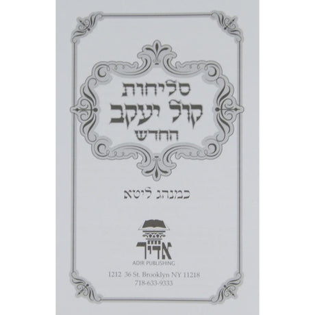 In stockRegular price $965Unit price /Unavailableסליחות אביר יעקב עדות מזרח רכה 17 ס"מ - עוז והדר