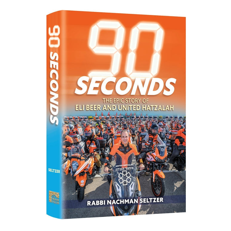 [Full Size Hard Cover] An Israeli child is born in a Ukrainian bomb shelter -- and United Hatzalah brings her home under fire ... A United Hatzalah volunteer scales a 12-foot-wall – and is the first to respond to the tragedy of Meron ... Eli Beer, founder of United Hatzalah, slips and breaks his leg racing to an emergency -- and manages to crawl to the choking child and save her life ... The amazing work of Israel’s United Hatzalah began, incredibly, when five-year-old Eli Beer witnessed a terror attack and dreamed of being the one to save the victim. While still a young teen, Eli set out to make that dream come true, creating an underground network of pioneering EMTs who were determined to bring their life-saving skills to victims in only 90 seconds, no matter where they were. 90 Seconds is the story of how a boy who failed in school created one of the the world’s largest all-volunteer emergency service. It’s the story of dramatic rescues, sometimes under fire. Of life-changing and life-saving innovations such as the “ambucycle.” Of bringing United Hatzalah’s lifesaving experience to Nepal, Haiti, and, most recently, Ukraine, and their heart-rending rescue work in the Surfside and Versailles wedding hall tragedies. It is the story of how with determination, vision, self-sacrifice and compassion -- and, of course, siyata D’Shmaya (the help of Heaven) -- lives can be saved and dreams can come true. Pages: 440 - Dimensions: 6" x 9" x 1.188"